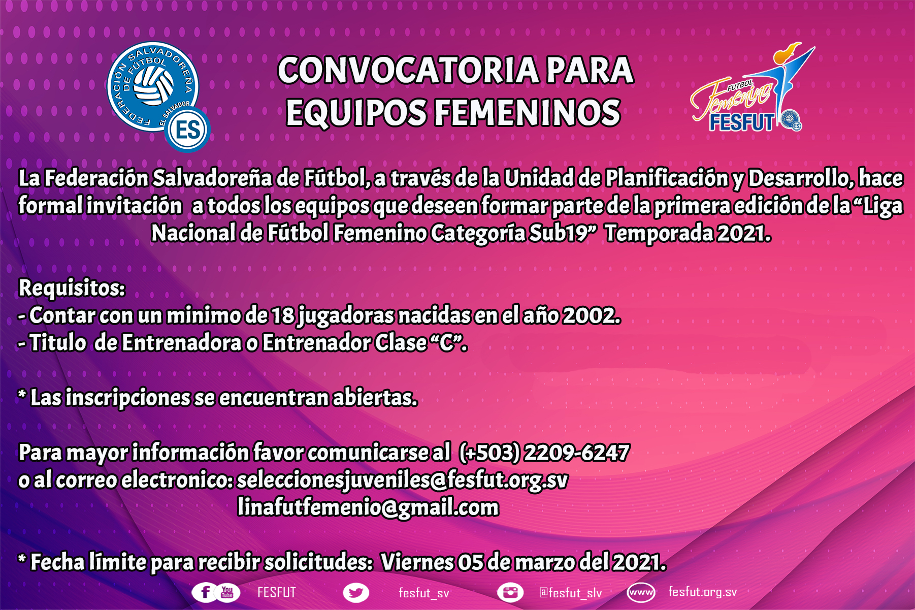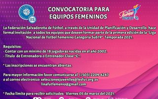 La Federación Salvadoreña de Fútbol (FESFUT), llevará a cabo la [...]