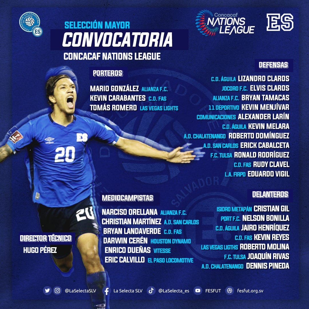 Ver imagen más grande Convocatoria Selección Nacional Mayor | El Profesor Hugo Pérez dio a conocer la convocatoria de Selección Nacional Mayor para disputar los juegos de @CNationsLeague del mes de junio 2022. #ElSalvador Por Comunicaciones Fesfut|2022-05-27T19:09:49-06:00mayo 26th, 2022|