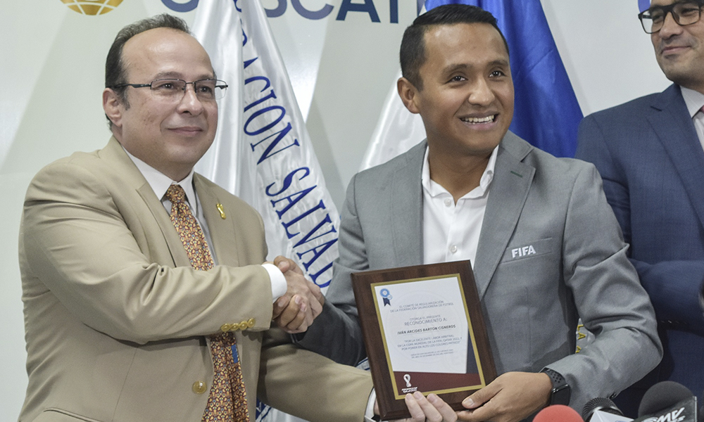 Autoridades del Comité de Regularización realizaron la entrega de reconocimientos a los Árbitros FIFA, Iván Barton y David Morán, por su excelente desempeño durante sus designaciones arbitrales en la Copa Mundial de la FIFA Catar 2022.