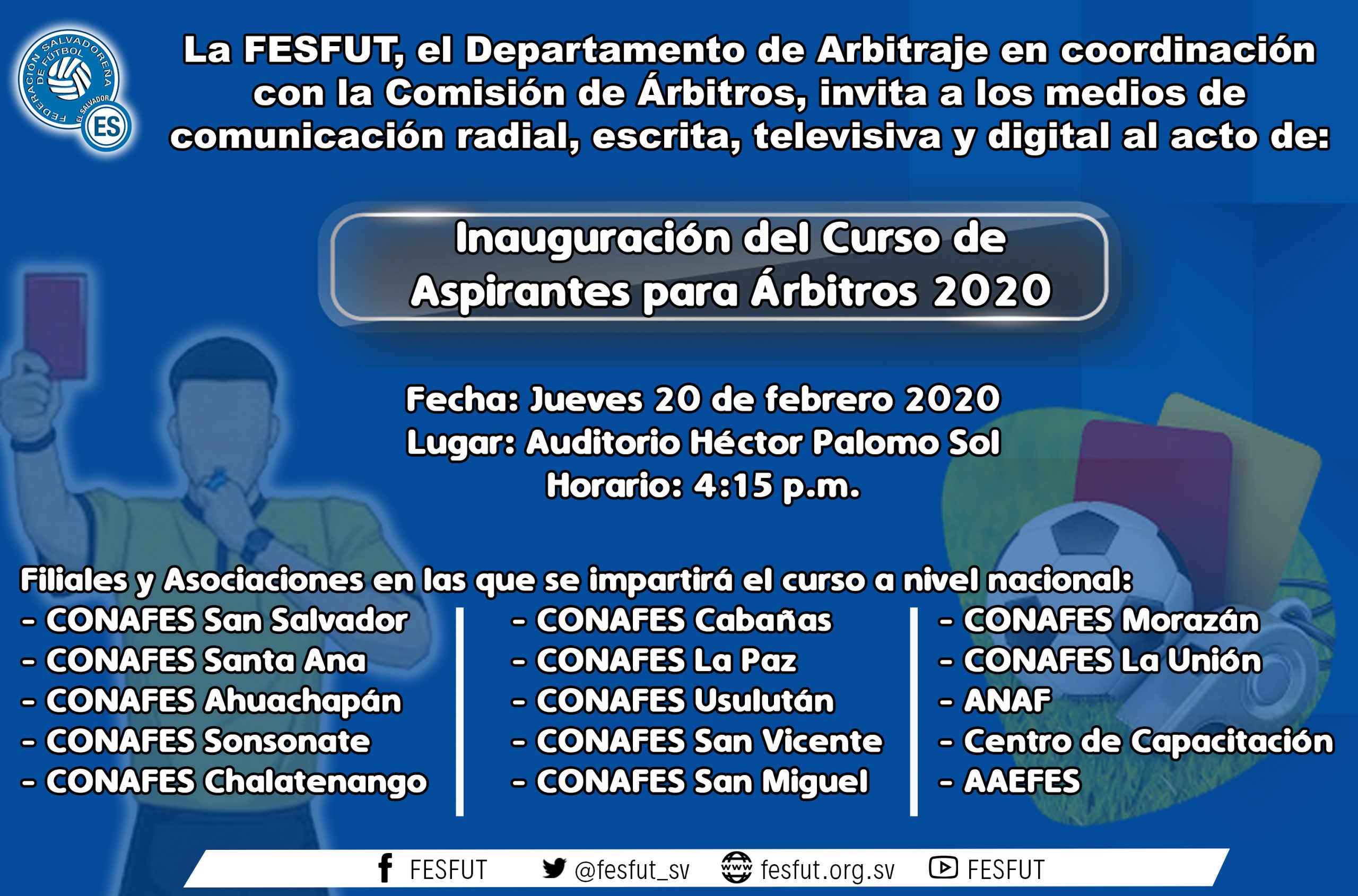 La FESFUT, el Departamento de Arbitraje en coordinación con la Comisión de Árbitros, invita a los medios de comunicación radial, escrita, televisiva y digital al acto de: