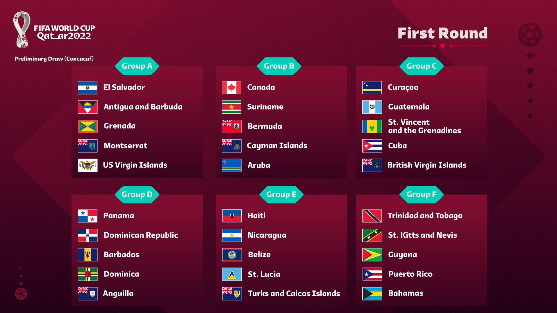 El proceso de elección determinó que 30 de las 35 selecciones de la confederación quedarán divididas en seis grupos, siendo El Salvador cabeza de serie junto a Canadá, Curazao, Panamá, Haití y Trinidad y Tobago.
