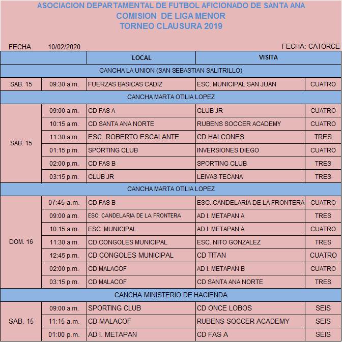 Programación Liga Menor, jornada 14 Por Comunicaciones FESFUT|2020-02-13T17:51:23-06:00febrero 13th, 2020|